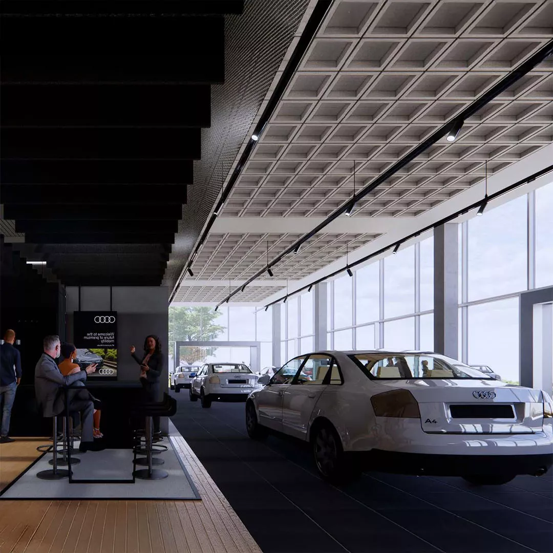 Our expansive 4000 sqm site features 12 showroom bays and 16 service bays equipped with advanced diagnostics and genuine Audi parts. Innovative construction methods provide spacious, welcoming showrooms and environmentally sustainable operations.